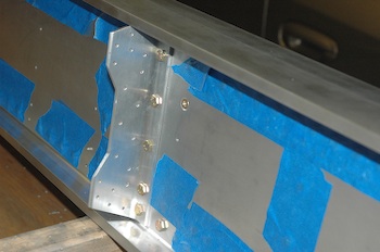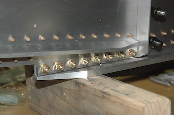 This angle piece is also one that gets bolted and riveted. The second picture shows the flush rivet side. The bolt heads here are not flush because the mating piece will slide right on by it. However, the piece will come so close that the hex heads are indexed with a flat side on top. If it had one of the points straight up it would interfere with the mating piece. These are two more bolted on pieces. |