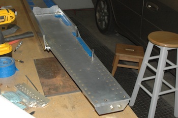 And all the flush rivets are done. I should actually say that all the flush rivets that I can reach with the rivet gun are done. One angle piece attaches in a way that makes access to the rivets with the gun impossible. I will wait until later and do these with the bolt. The second picture is my secret weapon for good rivets. Using full trigger pressure for a specific length of time with a stable air pressure seems to be the key. To get the timing correct I’m using my old metronome. I set it for 120 beats per minute and then count four four time as needed. All the rivets are the same diameter but the longer ones need more time to form. All the rivets set between 3 beats and four beats which is 1.5 to 2 seconds with a 3x gun. |
