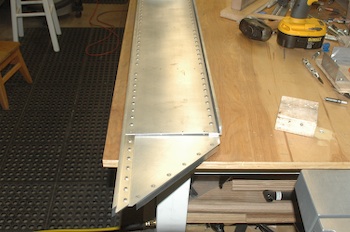 These are all pictures of the spar after the final gun riveting was completed. I had been very worried about riveting the spar. The bolt method is not as repeatable or reliable as the gun proved to be. It is cheap, and I agree that is will work, but if you have access to a 3x gun, from some friendly neighborhood RV builder or EAA chapter member, abandon the bolt method and back rivet. The bolt method IS back riveting. When using the gun with a back rivet set – with a collar – it is very difficult to screw up. |