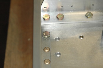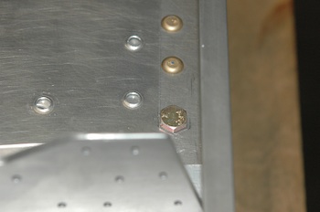 These two pictures show an unexpected tight fit. This bolt head just happened to be indexed as it is here. I don’t think the plans called out any special clearance issue. I can just slip a piece of paper between it and the web. If the bolt were indexed any other way it would have had to be turned to this position. Also note the round head rivets clear as expected. You can just see the slight flattening of the round head rivet from the back riveting procedure. Sonex and EAA sources say this is just fine. The gun and bolt flatten the head the same. As it turns out, the bolts the plans call out as needing to be indexed have plenty of clearance when indexed correctly. They might even have fit indexed the wrong way! |