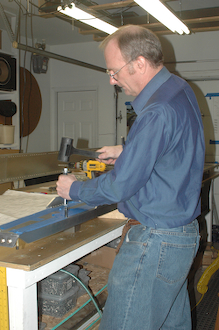 Picking right up where I left off… The boring stuff had ended and the spar was reassembled and ready to be made ready for riveting. I started by loading up all the rivets (mostly flush ones) from the inboard end through to the end of the spar web doubler. I set the flush head rivets into the dimples by putting the bucking bar as close to the rivet as possible and then strike the rivet head with the Sonex Rivet Tool. This sets the countersink better than just dimpling. Here is a rivet – the one on the right – before and after having been set this way. |