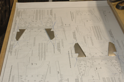 The first photo below shows the four ribs remaining to be modified. I used two of them to make up the aft root ribs. The second picture shows the final rib gussets.