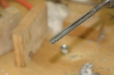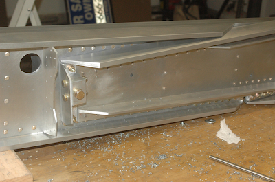 Here are four pictures of the drilled wings with the 3/8” attach bolts in place with a bunch of washers standing in for the spar tunnel material. The firs picture shows the two spars bolted together. The second picture shows the 3/8” reamer I used to enlarge the 5/16” holes. The reamer has a 5/16” pilot that guides the reamer. The pictures show the spars still bolted together after the three 1/4’ alignment bolts have been removed. |