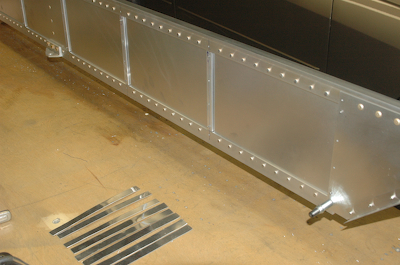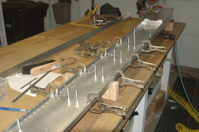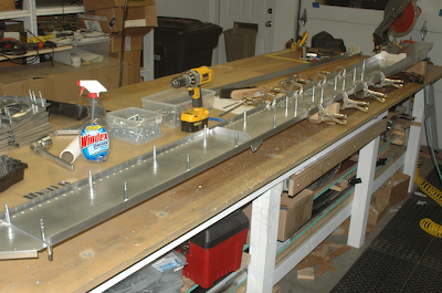 After drilling out the holes. I put all of the left wing materials in storage and cleaned up the garage. That was the 18th of June! Today I picked up where I left off and started to fit the ten, thick rib spacers and the eight thin rib spacers.