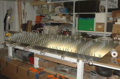 Panic completely gone and the skin is all aligned and ready for drilling, which has started in the second picture.