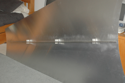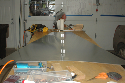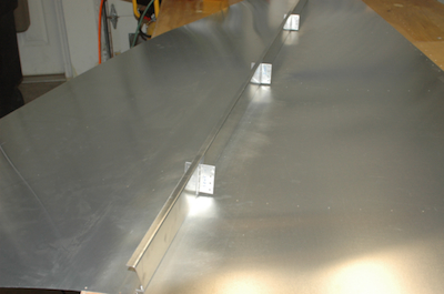 This is the underside with the support channel attached. Don’t forget, it’s a four foot wide table. This piece is very large. Here it is waiting for the the aft fuselage box to be finished so it can be installed. It shouldn’t be here very long. That’s the girls desk it is completely blocking. Back to a nice clean table. |