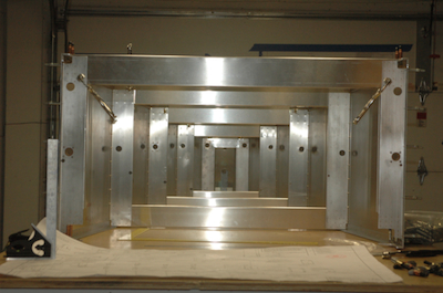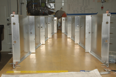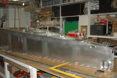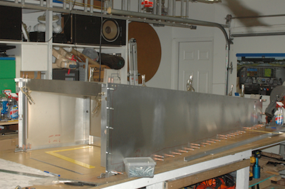 Although you can’t really see it, the table was marked up with the dimensions of the top of the aft fuselage box. I then set up the side panels on the marks upside down. I have seen other people make the box upside down and it makes sense, because the vertical channel pieces are square with it. I then started to grossly fit the upper and lower cross ties (lower on top because it’s upside down!) After this was all done, the pieces where only in an approximate location. |