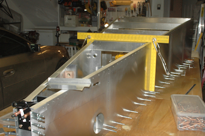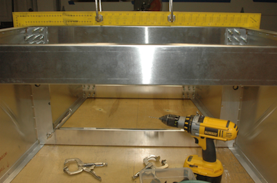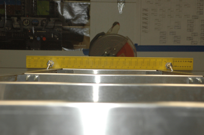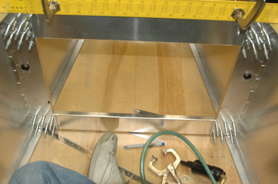 The first picture shows my feet, as I was sitting in the box to do the first one. Then, in the second picture, it was one frame forward. The next picture shows one of my aluminum jig pieces that I used to clamp the bottoms of the side panels to keep them from moving off the lines. Then it is one frame back from the first one and then the top (bottom) of the next frame back. Lorem ipsum dolor sit amet, consectetuer adipiscing elit, sed diam nonummy nibh euismod tincidunt ut laoreet dolore magna aliquam erat volutpat. |