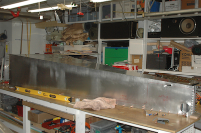 Then it’s time to do the ends. First the aft end then the front bottom cross tie. I will do the box beam cross tie after I turn the assembly over. With those done I could test fit the skin. It fit like a glove. All of the internal pieces have not been fitted yet, I have enough done to drill the skin and turn it over. I haven’t decided on the exact sequence yet. |