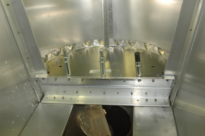 It was fun to attach the turtle deck skin shown in the last post, but at that point, I hadn’t even finished drilling the holes in the left side before I had to quit for the day. (Note: The plans call for attaching left to right but I went right to left) These two pictures show the completion of the pilot drilling of the left side. Before I got to the turtle deck section, I had reviewed the plans many times, but had assumed that skinning the turtle deck would be like skinning the wing – fit and attach all the ribs, then mount the skin. When I actually got to the plans page and read the general construction order, I was not sure I understood them for a while. It took me several readings and some thought before I realized that they wanted the skin mounted first, with no formers in position. This seems to be so that the skin can float fore or aft as needed during fitting to keep it from twisting. Since the skin went on first, I realized that fitting all but the front one would be challenging from an access standpoint. One of the reasons the bottom skin is not supposed to be riveted yet is to allow access for these. So through the bottom I came to start with the aft most former. Clamp it in place and drill. |