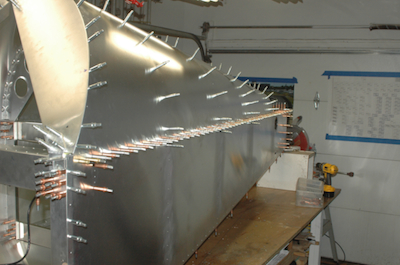 Well, it has been longer than expected but yes, I have half a fuselage finished and in my garage. My last post was up to the Thursday before the Super Bowl. I didn’t get to work again until the following Tuesday and then the dreaded deburring. But I’m getting ahead of myself. I had the entire assembly pilot drilled with all the interior holes updrilled. I put the bottom skin back on but before I did I took these two interior pictures since you can see the structure so well. Then it was time to updrill everything. |
