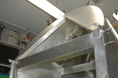 Then the only piece remaining is the bottom of the cross tie box beam. The bolts have been double and triple checked with the self locking nuts torqued and in place and it is riveted home. Almost. As it turns out, there are four rivets that I could not get at with the fuselage sitting where it is. I am calling it complete however, and those four rivets will be done when I move the unit so that I have access. And as a final reminder, I am holding off riveting the bottom skin until I am sure I won’t need access into the interior of the aft fuselage. On to the forward fuselage. |