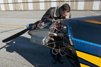 While making progress on the forward fuselage angles, I diverted some attention to helping Chris Williams get his Sonex back in the air. While helping Chris, this also provided me an excellent opportunity to learn how to bring an Aerovee to life. Chris also moved to a new hanger at C56 (Bult). Since he was not quite ready when his lease was up at GYY (Gary) he used my hanger at GYY for a few nights. The first picture is my hanger at GYY with the remainder of Chris’s stuff. The second picture is Chris’s plane, outside of his old hanger, ready for a first run after the rebuild of the Aerovee. The first picture below is Chris checking wiring after we failed to get the engine to fire. This day we verified fuel flow, spark, and rough timing but no go. The second picture is a few days later after Chris’s first flight test. A half hour later he made the short hop to C56 and got into his new hanger. By now Chris had figured out that in re-hooking up all the wiring, the trigger wires to the coils had gotten reversed. We took care of that, got the engine running smoothly after Aerocarb adjustments and fine tuning the timing. He will concentrate now on getting the temps in line. |
