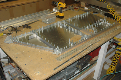 The top two pictures are of the right side after almost all the pilot holes have been drilled. The bottom two show the top and bottom pilot holes being drilled.