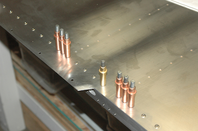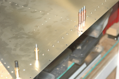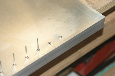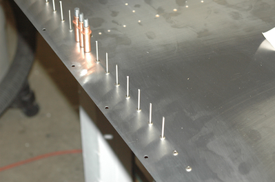 Time to rivet. This is the start of the right panel top longeron. There are a number of holes that need to be left without rivets until after the wing fitting and some that just have to be done a little later in the sequence. I put clecos in all the holes that I wanted to hold off on. The plans call out all the rivets and left open holes very clearly. |