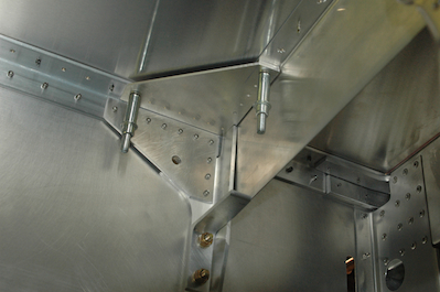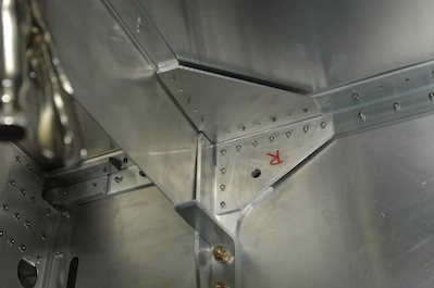 The first picture below shows the pilot drilling to attach the channel on the previous page. The second picture is a gusset and shim that attaches to the longeron and the just installed channel.