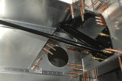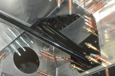 In the first picture, some bolt holes are at final size. In the second picture, I am doing the updrilling of these holes outside of the fuselage because of clearance issues.